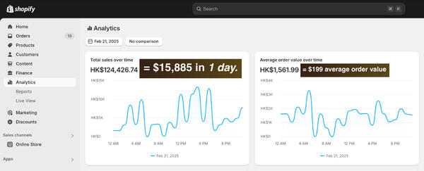 My own brand hit $15,885 in a single day, with a $199 average order value.